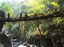 ![]() Puente de raíces vivas doble en East Khasi Hills | ||