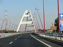 | Tipo de puentes | Tablero atravesando un arco | |
