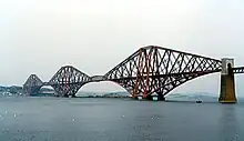 Los puentes de acero supusieron un nuevo salto tecnológico importante, propiciado por el desarrollo de los convertidores metalúrgicos (Bessemer y Thomas), y especialmente del horno Martin-Siemens, lo que permitió que a partir de las dos últimas décadas del siglo XIX se pudiera disponer de aceros cada vez de mejor calidad y en grandes cantidades. Aunque ya se había empleado anteriormente de forma aislada (como en el puente de las cadenas de Viena, proyectado en 1828 por Ignaz von Mitis),[12] hubo que esperar casi medio siglo hasta que en 1874 se construyera empleando acero de forma generalizada el puente de San Luis en Misuri sobre el río Misisipi. Proyectado por el ingeniero estadounidense James Buchanan Eads, consta de tres arcos de celosía (152+157+152 m de luz), y es considerado el primer gran puente de acero, en el que además se introdujeron numerosos procedimientos constructivos novedosos, como la ejecución de los arcos por voladizos sucesivos sin necesidad de cimbra (atirantándolos provisionalmente desde pilas y estribos).[12] Curiosamente, más de una década después, Eiffel todavía construyó en 1886 el viaducto de Garabit con hierro pudelado, prefiriendo un material que conocía y dominaba antes que arriesgarse a confiar en el acero. Sin embargo, la introducción del acero como sustituto del hierro forjado ya era imparable, y los dos mayores puentes de finales del siglo XIX se construyeron con este material: el puente de Brooklyn (1883; 1825 m y luz principal de 486 m) sobre el East River en Nueva York, modelo icónico de puente colgante proyectado por John Augustus Roebling; y el Puente de Forth en Escocia, (1890; 210+521+521+210 m de luz) atribuido a John Fowler entre otros, un descomunal puente en ménsula de insólita figura que supuso duplicar (alcanzando los 500 m) la luz máxima de este tipo de estructuras (hasta entonces, perteneciente al puente de Sukkur sobre un brazo del río Indo en Pakistán, con 250 m de luz).[13]