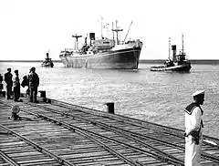 ![]() El barco Urmston Grange ingresando a Puerto Cuatreros | ||