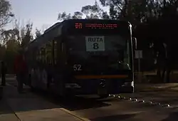 ![]() Pumabús de la ruta 9 frente a la parada "Camino verde" en la División de Ciencias Básicas de la Facultad de Ingeniería. | ||