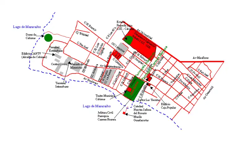 Es la antigua zona comercial de Cabimas, se encuentra entre el CC La Fuente y la Plaza Bolívar y entre la Av Independencia y el Boulevard Costanero. Los principales locales comerciales son los que le dan la cara a la Av Independencia, mientras que las calles internas sirven para almacenes a todo el centro de Cabimas.