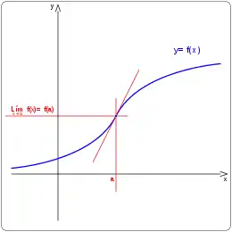 En la matemática, un punto de inflexión de una función, es un punto donde los valores de una función continua en x pasan de un tipo de concavidad a otra. La curva «atraviesa» la tangente.[1] Matemáticamente, la segunda derivada de la función f en el punto de inflexión es cero,[2][3] o no existe.[4]