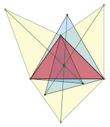 El triángulo podal de un punto isodinámico, el triángulo formado al trazar perpendiculares desde a cada uno de los tres lados del triángulo es equilátero,[5] al igual que el triángulo formado al reflejar a través de cada lado del triángulo.[7] Entre todos los triángulos equiláteros inscritos en el triángulo , el triángulo podal del primer punto isodinámico es el que tiene área mínima.[8]