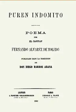 - Fernando Alvarez de Toledo (atribuido). Puren indómito. A. Franck'sche Verlags Buchhandlung, Leipzig, a cargo Diego Barros Arana, 1861 (marcada 1862).