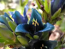 Puya alpestris[3] se presenta como una mata de hojas grises-verdosas y puntiagudas; tiene tallos altos dispuestos en una inflorescencia que contiene muchas flores de color azul verdoso muy inusual. Las flores en su interior contienen un polen anaranjado que atrae a colibríes y otras aves.