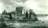 La iglesia medieval se encuentra en el pueblo de Itäkirkonkylä/Österkyrkoby («Villa de la Iglesia Oriental»). Durante la Reforma las pinturas sobre los muros se blanquearon. Hace unos años se redescubrieron eliminando el blanqueado. El pueblo queda justo al este del afluente más occidental del río Kymi (en sueco, Kymmene) y fue en una época la frontera entre Rusia y Suecia, según se estableció en el tratado de Åbo de 1743. De hecho, en el lado occidental del río hay un municipio llamado Ruotsinpyhtää («Pyhtää sueca») conocida como Strömfors en sueco.