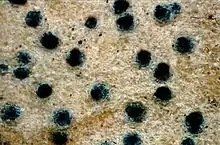 ![]() Pyrenula pseudobufonia, miembro de Pyrenulaceae | ||