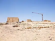 La construcción principal, el palacio, es de basalto negro y arenisca, y es de planta cuadrada, con una torre en cada esquina. Su interior estaba adornado con magníficos mosaicos de animales, detallados frescos y relieves de estuco finamente elaborados.