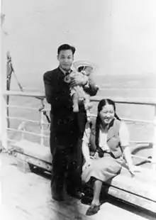 ![]() Qian Sanqiang y He Zehui a su regreso a China en 1948. | ||