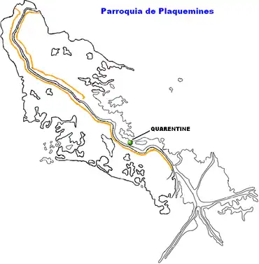 Localización de Quarentine en el mapa de la Parroquia de Plaquemines.