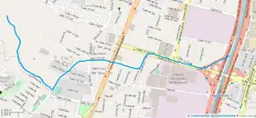 Luego al entrar a la ciudad es canalizada y rectificada inmediatamente, lo cual ha generado problemas limítrofes entre los 2 municipios que separa, al haberse alterado las condiciones naturales que servían de frontera hace algunos años. 1