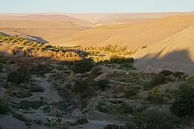 ![]() Vista de la quebrada y sus cultivos en agosto del 2015 | ||