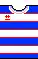 - Uniforme titular: Camiseta blanca con horizontales azules y detalles en rojo, pantalón y medias blancas.