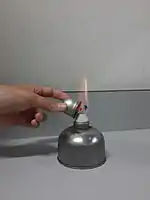 El combustible típico es el alcohol desnaturalizado, el metanol o el isopropanol . Para apagar la llama, se utiliza Una tapa como despabiladeras - ( snuff ),[2][3]