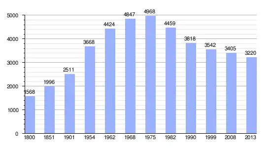 Los datos demográficos contemplados en este gráfico de la comuna de Quillan[4] se han cogido de 1800 a 1999 de la página francesa EHESS/Cassini, y los demás datos de la página del INSEE.[5]