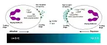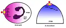 Tanto en D. discoideum como en los neutrófilos humanos, se produce una inversión de la polaridad al pasar de una respuesta de quimioatracción a una de quimiorrepulsión.[33] Se han observado modelos de quimiotaxis demostrados utilizando análogos del AMPc[34] Durante la quimioatracción mediada por cAMP, el cAMP quimioatrayente activa el PI3K en el borde de ataque junto con la activación localizada de las pequeñas GTPasas Rac y Cdc42.[35] Esto, a su vez, activa la PLC, lo que conduce a la generación de IP-3, lo que da como resultado una pérdida de PtdIns(4,5)P2 en el borde de ataque.[36] El quimiorrepelente 8CPT-cAMP inhibe la actividad de PLC y, por lo tanto, aumenta la acumulación de Ptds(3,4,5)P3 y la activación de PTEN. De esta manera, el quimiorrepelente invierte la polaridad del gradiente de PtdIns(3,4,5)P3 e induce quimiorrepulsión. La evidencia reciente también implica un papel para la señalización de PI5K y Rho durante la toma de decisiones direccionales y la migración.[37]
