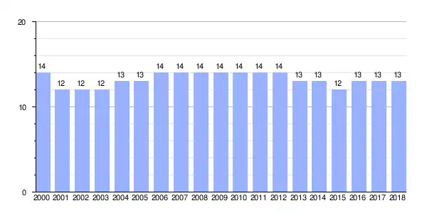 | Gráfica de evolución demográfica de Quintás entre 2000 y 2018 |