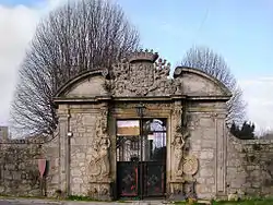 Destaca la entrada principal a La Quinta de piedra, ricamente decorada, con un gran escudo de la familia muy elaborado y dos columnas a los lados de la puerta que sujetan dos sirenas de piedra.