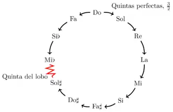 Así pues, el problema de la quinta del lobo no es solamente que este intervalo en particular esté desviado, sino que cualquier intervalo que en su composición integre a esta quinta, estará desviado en igual medida.