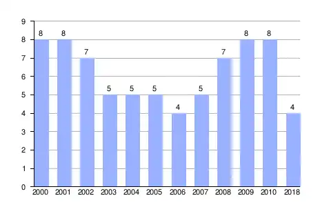 Población de derecho (2000-2018) según los censos de población del INE a 1 de enero de cada año.[4] |