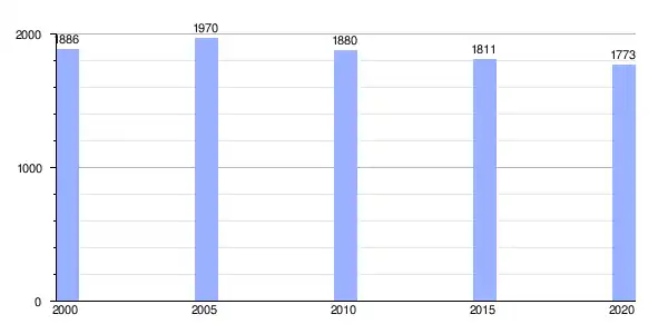 | Gráfica de evolución demográfica de Quiroga (aldea) entre 2000 y 2020 |