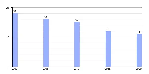 | Gráfica de evolución demográfica de Río (aldea) entre 2000 y 2020 |
