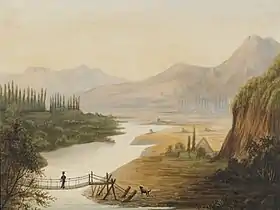 ![]() El río Aconcagua, en un óleo de Pedro José Amado Pissis. | ||