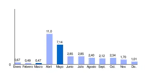 El caudal mensual medio observado en marzo (mínimo de estiaje) es de 0.47 m³/s, lo que significa un 2,5 % del caudal medio del mes de mayo 19.3 m³/s), lo que muestra la amplitud elevada de las variaciones estacionales. Estas diferencias en el caudal mensual puede ser más marcado aún comparando años.