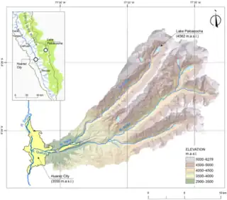 - Mallqui Meza, Helder; Valverde Balabarca, Herbert; Rosales Pereda, Jaime; Rosario Guerrero, Ana Marlene (1 de junio de 2016). Información de caracterización de la subcuenca del Quillcay. Inaigem. p. 7. Consultado el 16 de diciembre de 2018.