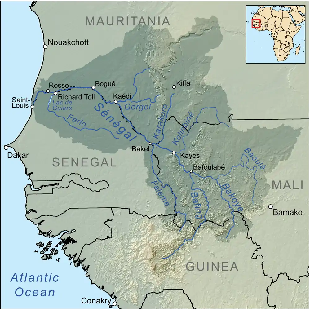 - Esta obra contiene una traducción derivada de «Sénégal (fleuve)» de Wikipedia en francés, publicada por sus editores bajo la Licencia de documentación libre de GNU y la Licencia Creative Commons Atribución-CompartirIgual 4.0 Internacional.