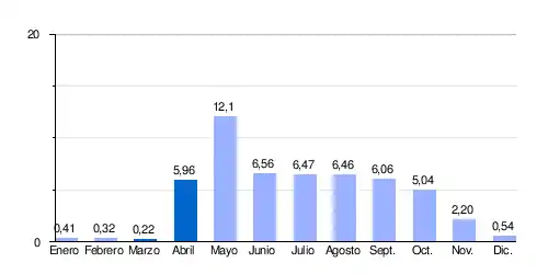 El caudal mensual medio observado en marzo (mínimo de estiaje) es de 0,22 m³/s, mientras que el de mayo alcanza los 12,1 m³/s, lo que subraya las variaciones estacionales de amplitud muy elevada. En los 26 años del periodo de observación de 26 años, el caudal mensual mínimo fue de 0,01 m³/s (diez litros) en marzo de 1962, mientras que el máximo se elevó en mayo de 1966 a 40,3 m³/s.