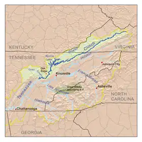 El río Clinch nace en la montaña Buckhorn, en el condado de Tazewell, cerca de Tazewell, en el suroeste de Virginia y fluye hacia el suroeste a través del Gran Valle de los Apalaches, recogiendo varios afluentes antes de unirse al río Tennessee en Kingston, en el este de Tennessee.