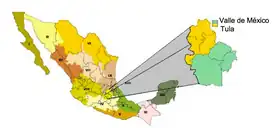 La región administrativa número XIII, Aguas del Valle de México, tiene una superficie total de 16 426 kilómetros cuadrados, está formada por los territorios del Distrito Federal, gran parte del Estado de México, el Estado de Hidalgo y el de Tlaxcala. Esta región presenta la mayor ocupación poblacional, y es la menor en extensión territorial. Para mejorar la administración de la zona esta región se divide en dos subregiones: la del Valle de México conformada por 69 municipios y 16 delegaciones; y la subregión Tula por 31 municipios.