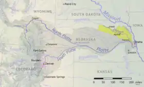 El río Elkhorn es un afluente del curso bajo del río Platte, a su vez, afluente del río Misisipi. Se origina en la región conocida como Sandhills en Nebraska, y fluye en dirección sur unos 470 km hasta confluir con el Platte cerca de la ciudad de Omaha.[1]