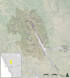 El río constituyó la mitad oriental de la frontera norte de la Colonia de la Columbia Británica en el momento de su creación en 1858, al norte de lo que eran los Territorios del Noroeste.