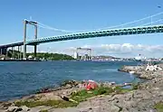 - El Puente Älvsborgsbron, (en sueco, Älvsborgsbron) (57°41′29″N 11°54′5″E). Es el primer puente sobre la entrada del puerto de Gotemburgo.