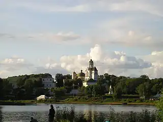 ![]() Vista del Monasterio Spaso-Preobrazhenski (del Salvador) en Yaroslavl desde la otra orilla del Kótorosl. | ||