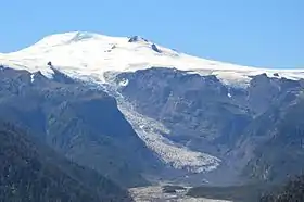 ![]() El volcán Michinmávida y una lengua de su glaciar. | ||