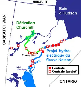 - Nelson River Hydroelectric Project (en la Wikipedia en inglés)