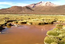 ![]() Cerro Chihuana 5279 m, al oriente de los orígenes del río Surire. | ||