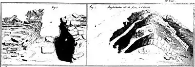 Una primera descripción de los ríos de piedra de las Malvinas se dio en razón de la exploración de las islas de Antoine-Joseph Pernety durante la expedición francesa de 1763-64 bajo Louis Antoine de Bougainville, que estableció el asentamiento de Port Saint Louis en la isla Soledad. Al cruzar el cuello entre la bahía de la Anunciación y la bahía de la Maravilla describió con detalle dos elementos de piedra particulares que él llamó 'Puertas de la ciudad' y 'Anfiteatro'.[14]