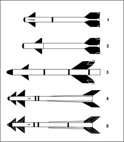 ![]() Dos misiles israelíes, un Shafrir 1(arriba) y un Python 4(abajo) | ||