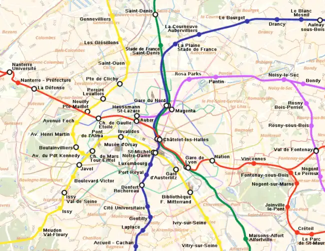 - Guía de transporte en el RER de París (en español)