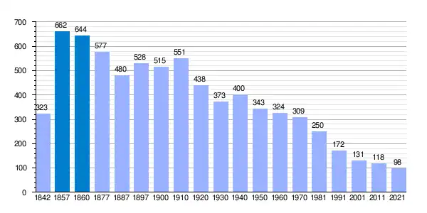 El máximo número de pobladores se alcanzó en 1857, con 662 habitantes de hecho (353 mujeres, 297 hombres, 1 mujer transeúnte y 11 hombres transeúntes). Pocos años después, en 1863, el pueblo contaba con 148 vecinos y "cuatro medios vecinos".