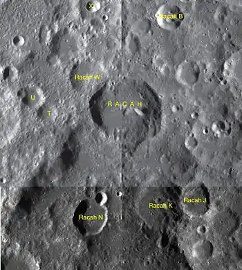 Por convención estos elementos son identificados en los mapas lunares poniendo la letra en el lado del punto medio del cráter que está más cercano a Racah.