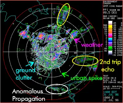 - «Errores comunes en interpretación de radar». Environment Canada. Archivado desde el original el 30 de junio de 2006. Consultado el 23 de junio de 2007.