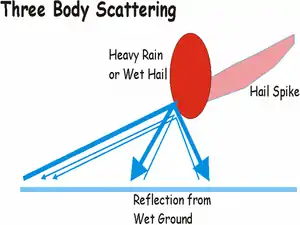 - Los ecos, proveniente del reflejo sobre los blancos detectados, son analizados de acuerdo con sus intensidades para establecer los índices de precipitaciones del volumen explorado. La longitud de onda utilizada (1 a 10 cm) asegura que el reflejo será proporcional al índice, dado que está en el rango de la dispersión de Rayleigh, que indica que los blancos deben ser mucho más pequeños que la longitud de onda con la cual se explora (por un factor de 10).[9]