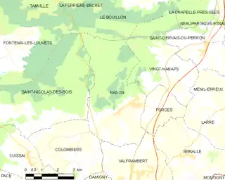 Radon era una comuna francesa situada en el departamento de Orne, de la región de Normandía, que el 1 de enero de 2016 pasó a ser una comuna delegada de la comuna nueva de Écouves[3] al fusionarse con las comunas de Forges y Vingt-Hanaps.