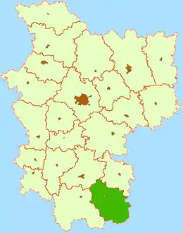 Comprende la ciudad subdistrital de Liuban, el asentamiento de tipo urbano de Urecha y ocho consejos rurales:[1]